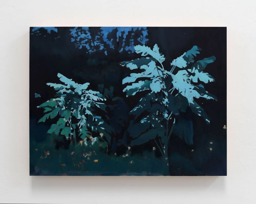In his latest oil paintings, the artist extends his exploration of the Latin American Gothic by painting the night as a terrain of ambiguity and charge. The series locates itself in the rural outskirts of Alajuela Province, where moonlight and artificial glows ominously play across dense vegetation. Paths dissolve, leaves radiate, shadows thicken. What emerges is a distinctly Central American nocturne that fuses atmosphere, architecture, and ecology. Here, light is not a clarifying force. Moonlight and artificial illumination do not soothe or stabilize; they unsettle. They cling to foliage, fracture the dark, and cast the walls of modest homes into spectral relief. The familiar countryside becomes uncanny, transformed into a living threshold in which intimacy and estrangement coexist.