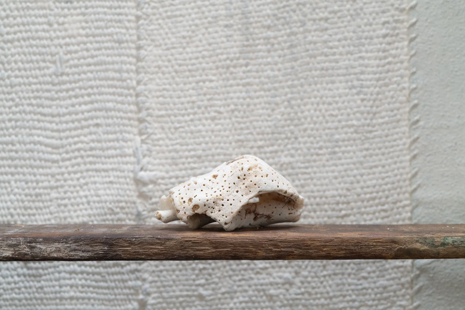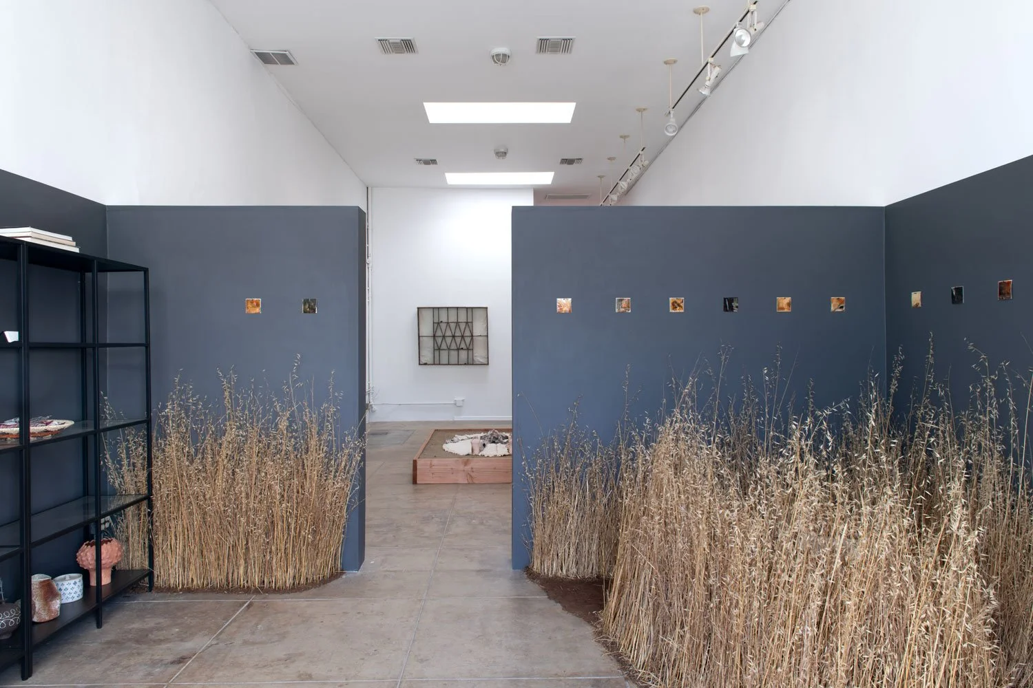 Helena Westra’s (b. 2000) practice is deeply rooted in local history, natural cycles, and archetypal symbols. Lying Fallow—the golden meadow and accompanying soundscape marking the entrance to the exhibition—began as a response to personal burnout, and seeks respite in nature’s ebbs and flows. In agricultural practices, a fallow field is left unplanted for a season so the soil can regenerate; in naturopathy, the “inner autumn” is an essential but often uncomfortable phase of the menstrual cycle that requires rest. Westra honors seasonality with the communal “planting” of these grasses in hand-mixed adobe, both sourced near her home in San Diego County. To cultivate slowness, she placed a small stool inside the meadow where you can pause, listen, and feel the earth underfoot. Closely linked to this notion of restoration is Now I lay me down to rest: a controlled burn, a multifaceted performance and sculptural piece invoking the regenerative power of fire. In 2022, Westra buried and burned the ceramic skeleton—made to her exact proportions, and composed of individual sculptures of Southern California flora and fauna—in a pit fire; the skeleton now rests peacefully in savasana, or corpse pose. Though the American government has intermittently banned controlled burns, Indigenous communities in California have used this practice for centuries. Integral to forest stewardship and land management, burns like these offer a way for humans to aid and protect the ecosystems they inhabit.