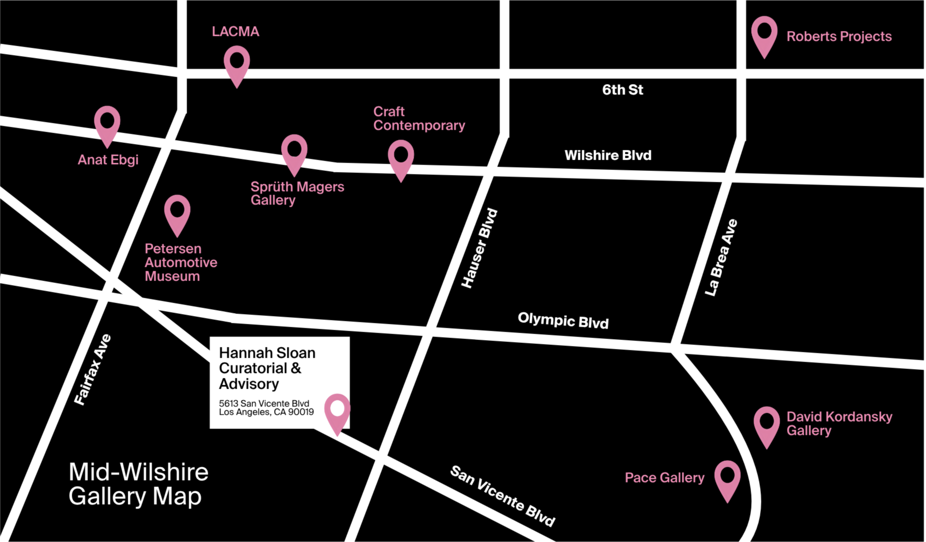 We invite you to explore the local galleries and cultural centers surrounding HSC&A in the Mid-Wilshire and Mid-City neighborhoods. To help you plan your trip, printed copies of the maps below will be available at the opening.